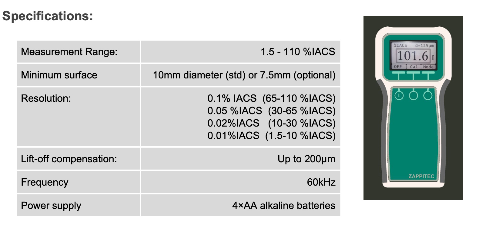 12Z Eddy Current Conductivity Meter