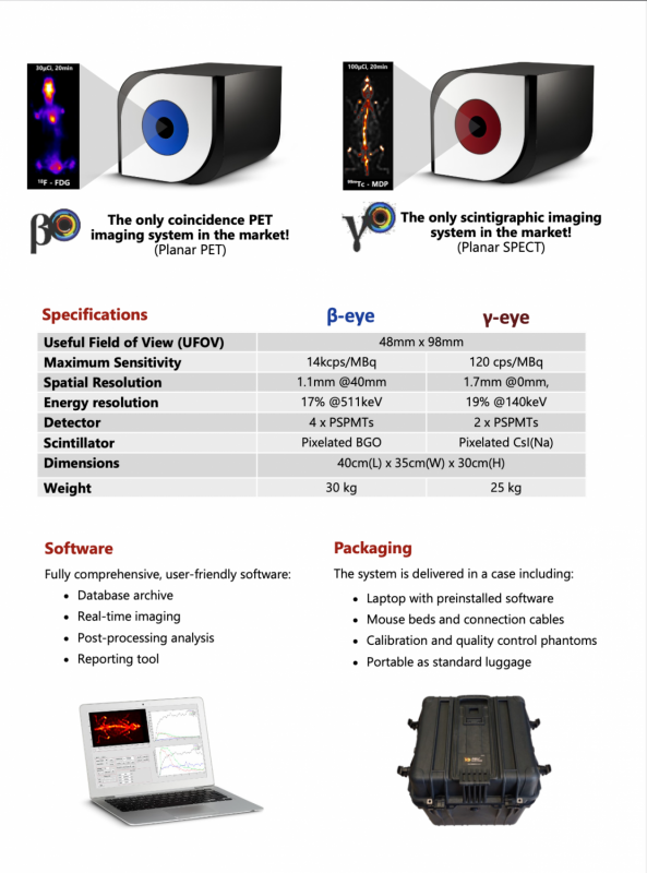 • The γ-eye allows for the imaging of biomolecules labelled with SPECT isotopes.