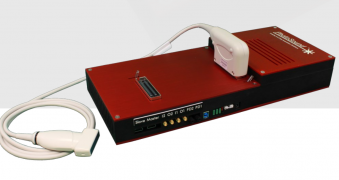 PhotoSound Technologies, Inc. and Telemed, UAB are proud to announce their first jointly developed product. Pri- marily an ultrasound imaging device, MoleculUSTM features B(2D), M, Color Doppler, and Pulsed Wave Doppler imaging modes as standard clinical features. Additionally, MoleculUS enables photoacoustic acquisition and 2D imaging with 128 channels alternating between the ultrasound beamformer and amplified broadband parallel receive. The system col- lects photoacoustic signals while being optically or electri- cally triggered by the laser source and performs ultrasound imaging in between laser pulses. Raw data can be accessed in both modalities. The system comes with a software development kit (SDK) that allows customization of the device software and graphical user interface. There is a line- ar, as well as, a micro-convex probe available for imaging applications and the system is configurable for custom- designed probes.