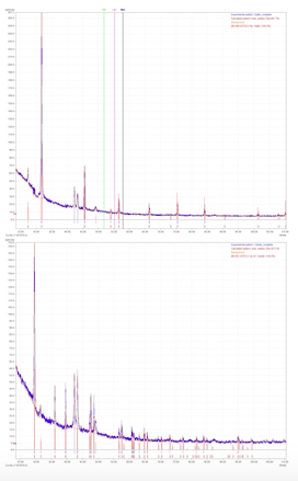 To validate the Planet in-field X-ray diffractometer, we took two samples readily at hand to identify the phases therein. Kitchen salt and Calcite. We measured these samples from 23 - 110o 2Theta. We analyzed both X-ray diffraction patterns with the Match! software from Crystal Impact. In both samples the correct phases were identified without the need to apply any restrictions. We just loaded th pattern and the software automatically came up with the correct result.